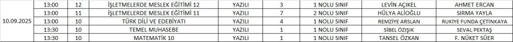 SORUMLULUK SINAVINA GİRECEK ÖĞRENCİLER VE DERSLERİ >